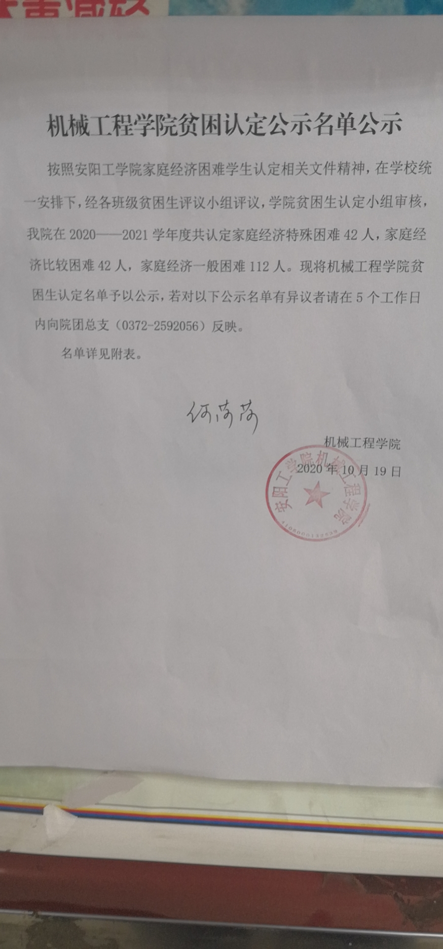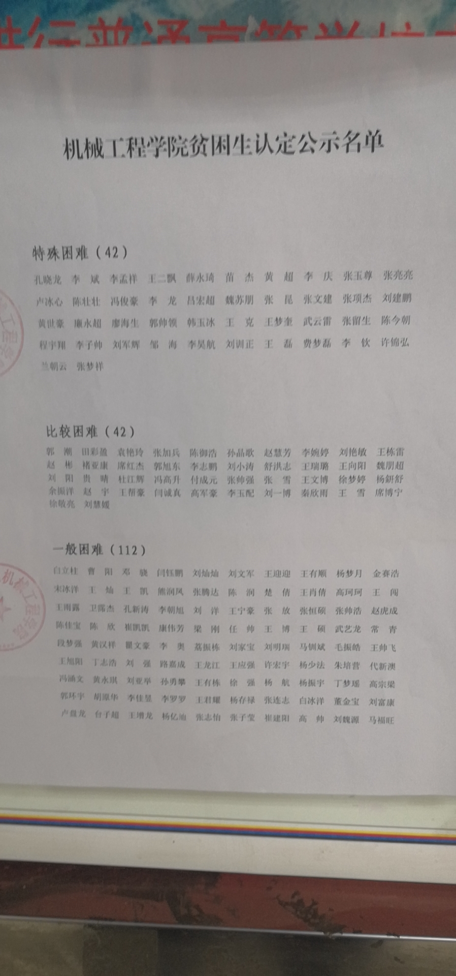 贫困生认定公示名单