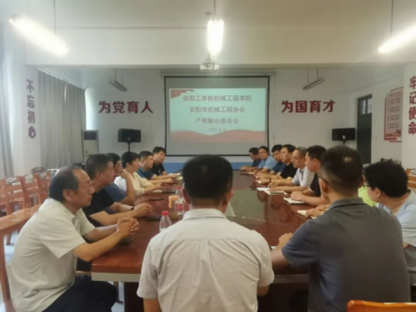 为推动产学研协同创新,寻求校企合作共赢、共谋发展。8月4日上午安阳市机械装备制造行业协会会长、安阳锻压数控设备有限公司董事长刘巍,率领副会长黄洪亮、孙兴华,理事蒋日发、谢玲霞,秘书长陈宪安一行7人,到公司开展产教融合对接交流。交流会由公司经理马洪儒主持,副经理王飞和各教研室主任参加交流会。